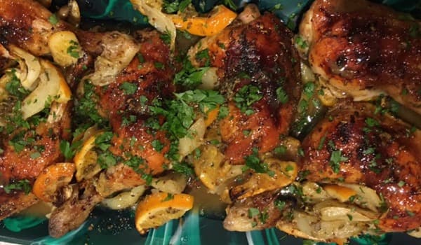 One of my favourite Ottolenghi dishes! A comforting roast chicken maryland dish, marinated overnight in Pernod, orange & lemon juice, wholegrain mustard, fennel seeds, brown sugar & thyme. Then baked with orange slices & fennel bulbs & kipfler potatoes ... HEAVEN!