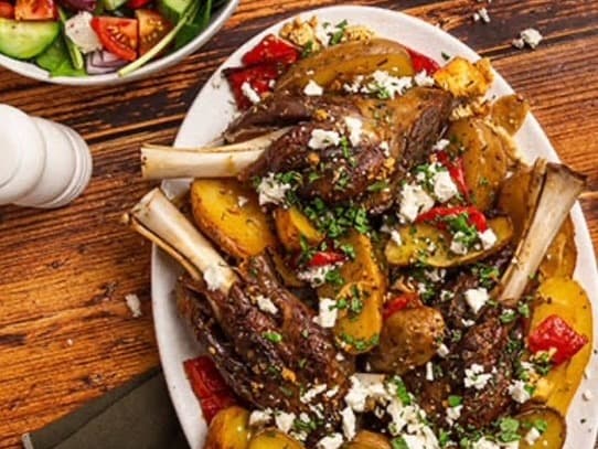 Classic comfort food dish. Lamb shank is slow cooked with white wine, lemon, chicken stock, rosemary & oregano until fall off the bone tender. Served with kipfler potatoes & topped with feta & parsley. Add a side salad for a complete meal.