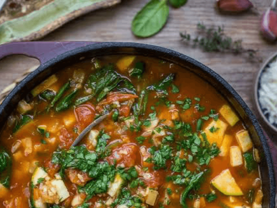 A comforting & delicious fish stew with classic Spanish flavours. I use a fresh barramundi portion in each serve with green olives, chickpeas, potato, tomato & lots of garlic & smoky paprika to make you feel like you are by the sea in Spain. Enjoy with crusty bread to mop all the goodness.