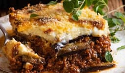 I fell in love with this dish at my friends The Harbilas's Greek feast many moons ago in Maroubra... & I still put it up there with some of the best comfort food around. Lamb mince is slowly cooked in tomato, oregano, cinnamon & spices and then layered with grilled eggplant, potato & finished with a creamy bechamel sauce. Delicious on its own or with a simple side salad.