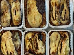 lamb mince, Potato, Eggplant, Zucchini, Carrot, HOMEMADE BEEF STOCK, Milk, onion brown, Tomato paste, tomato puree no added salt, Butter (Milk), corn flour gluten free, extra virgin olive oil, Breadcrumbs (GF), Sea salt, Cinnamon, Garlic, Oregano, Nutmeg, allspice, Pepper, Bay leaf