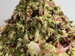Fresh broccoli is shaved then tossed with cranberries, pecans, pepita seeds, hint of orange zest & pickled Spanish onion. Served with a simple citrus vinaigrette on the side.