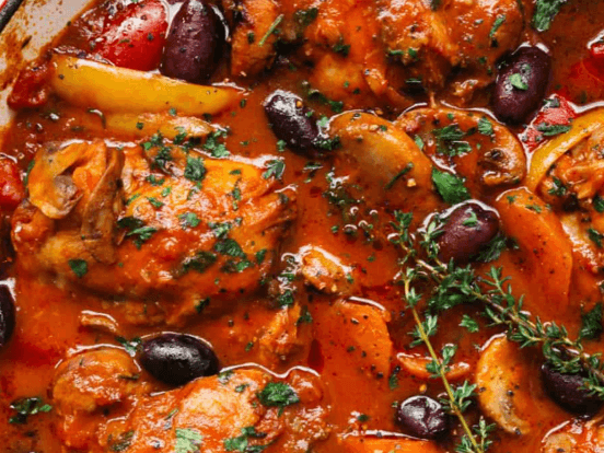 Rustic hunter- style stew of chicken. Slow cooked with red wine, tomato, mushroom, garlic, onion, capsicum, olives, parsley & thyme. Enjoy with a side of parmesan polenta, rice or pasta. This serves 2 people.