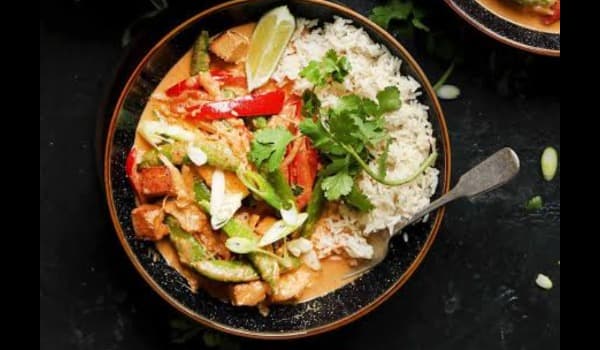 Seasonal fresh vegetables are simmered in an Indian tomato spiced curry sauce mellowed out with coconut cream. Best served with a side of steamed rice.