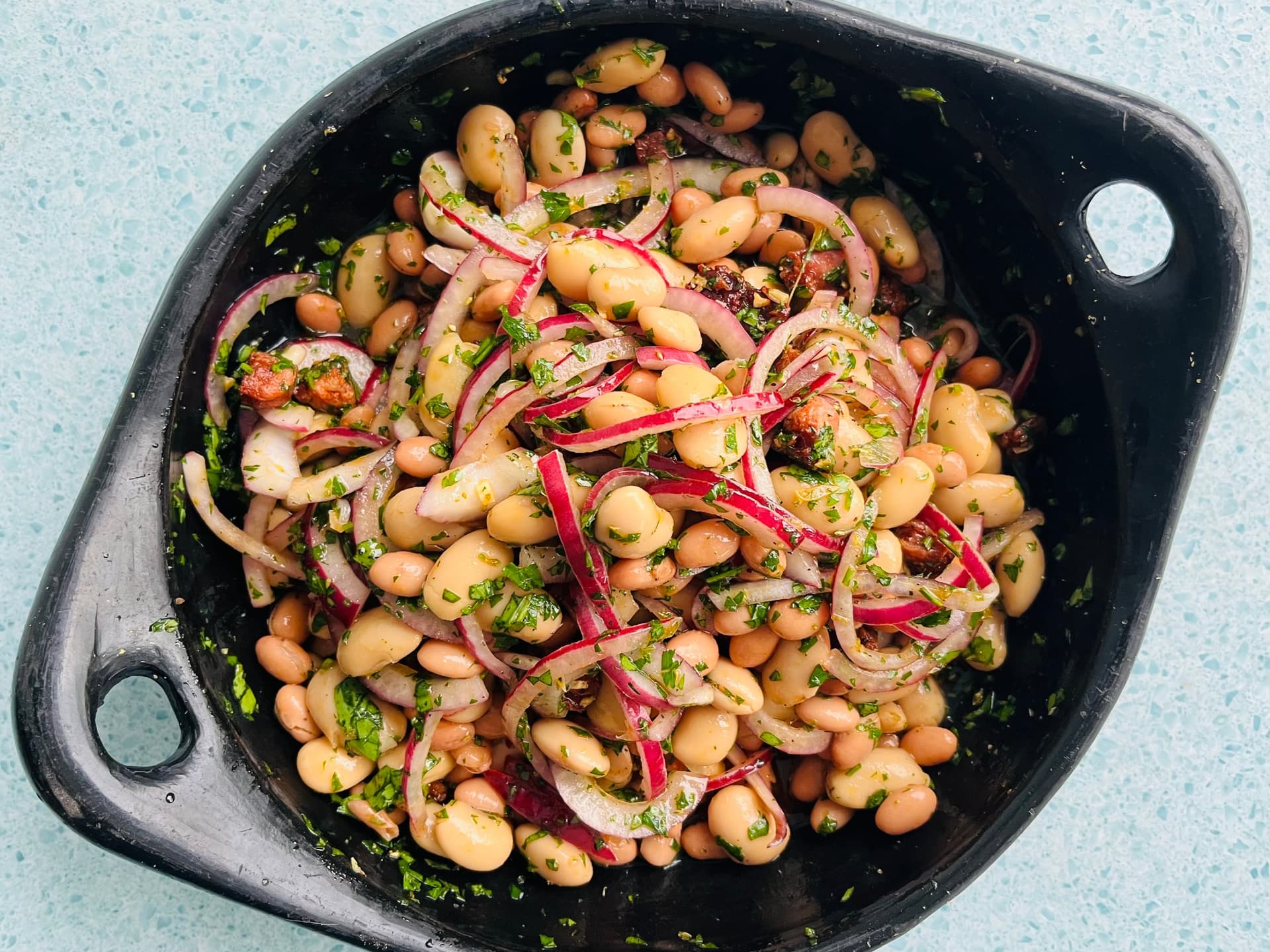 Super simple mixed bean salad dressed & ready to enjoy. I love this for a light lunch or as a side to other dishes.