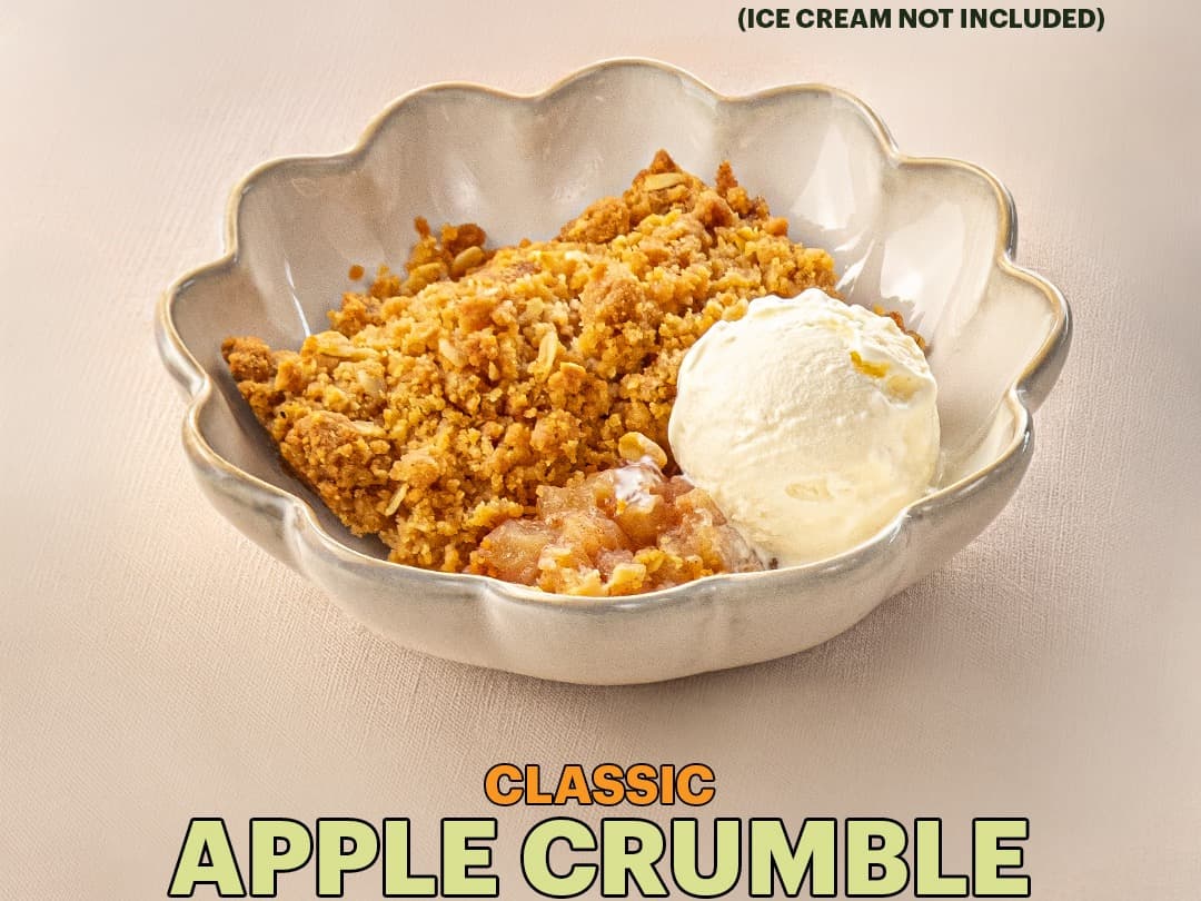 400g TRAY | Traditional spiced apples, baked beneath a golden, buttery crumble topping.