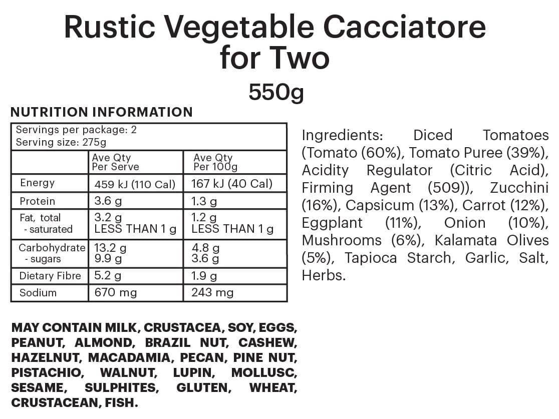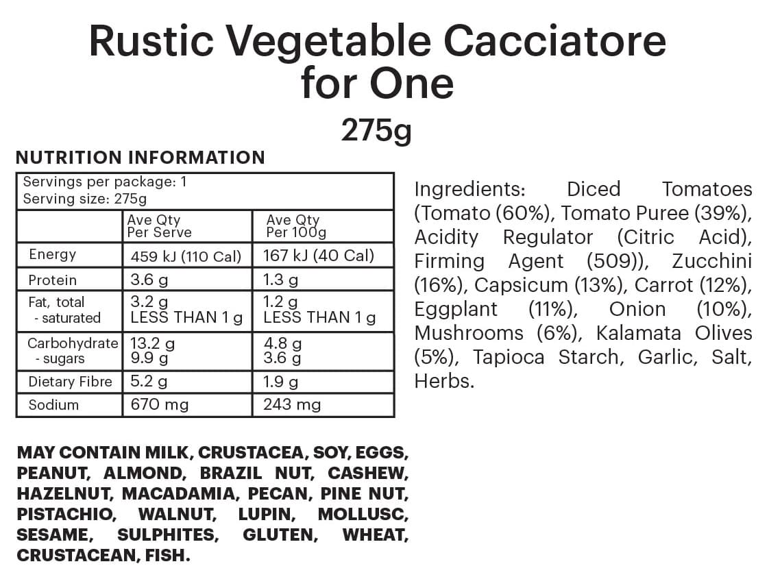 PREMIUM FOUNDATION | Hearty plant-based stew filled with zuchinni, eggplant, capsicum, carrots and mushrooms, simmered in a rich tomato sauce with olives and herbs. Enjoy with a side of delicious creamy mash!