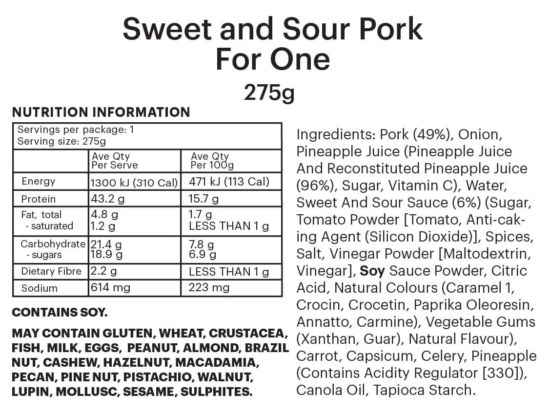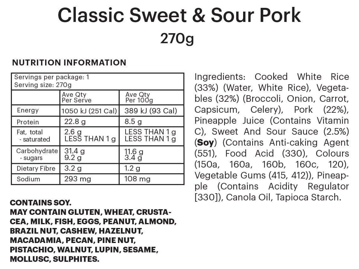 INDIVIDUAL SERVE | Delicious sweet and sour pork with fluffy rice, crisp broccoli and tender baby beans.