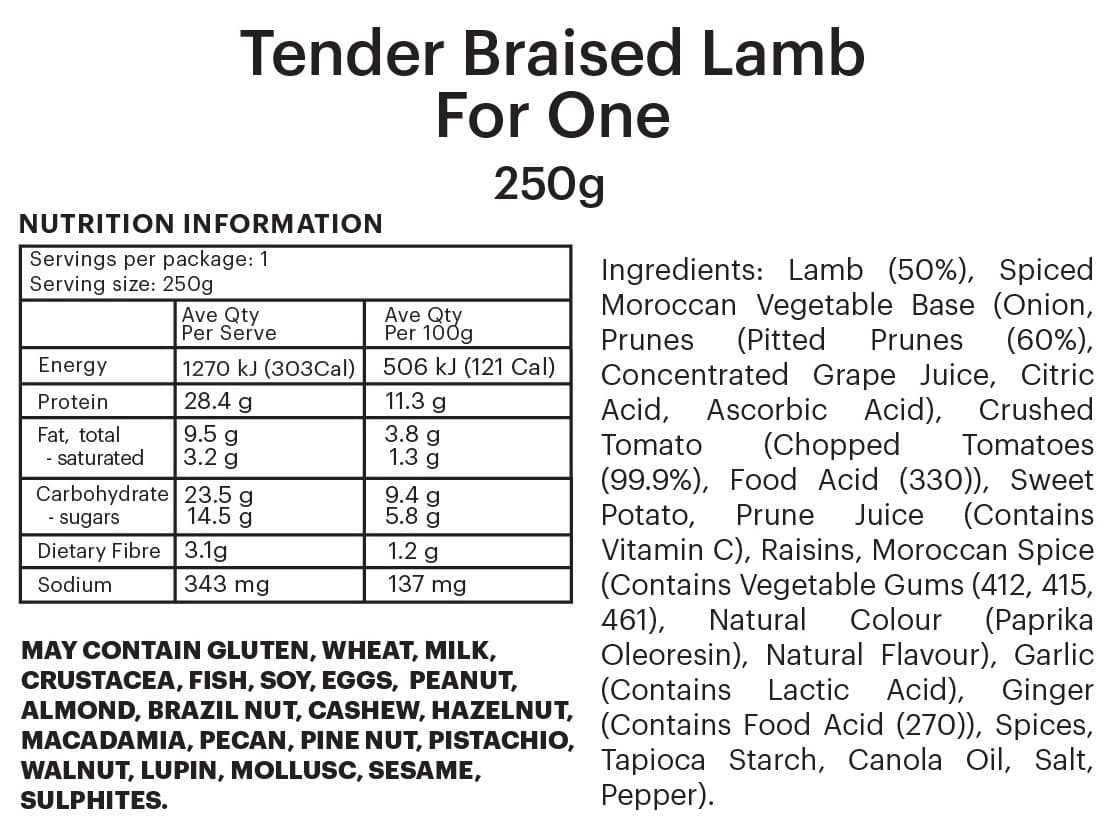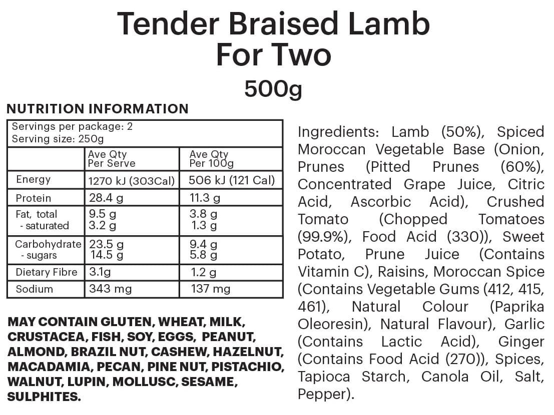 PREMIUM FOUNDATION | Slow-braised lamb in a sweet sauce Two different size options to meet your needs. Add your own mash potato and side of baked veggies to compliment the flavours!