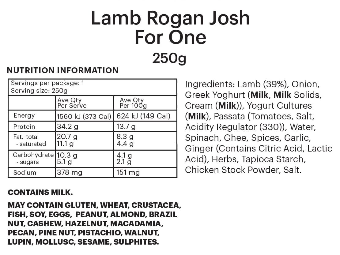 PREMIUM FOUNDATION | A curry classic that combines Aussie lamb with tasty spice, gentle heat and the flavoursome goodness of spinach. Two different size options to meet your needs. Elevate it up with rice, pappadums and your favourite chutneys for a truly satisfying meal!