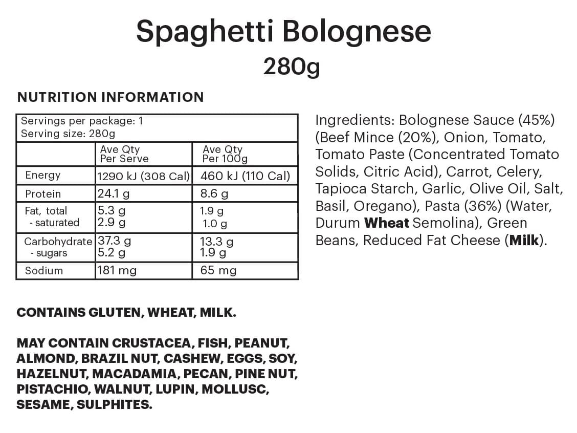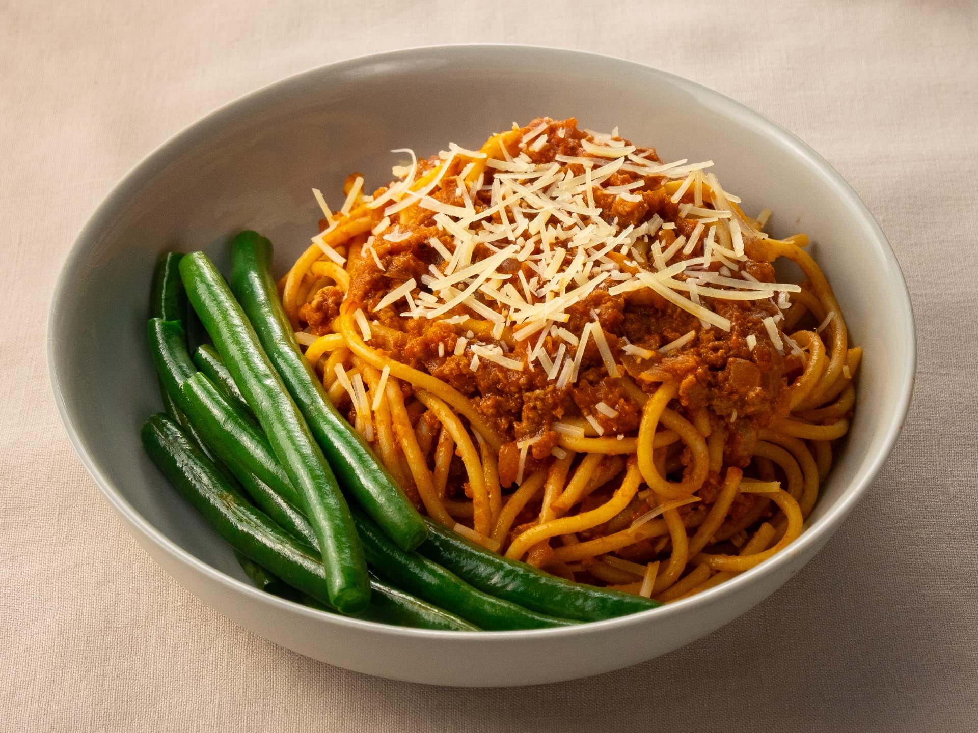 SMALLER SINGLE SERVE | Classic homestyle spaghetti bolognese served with crisp green beans