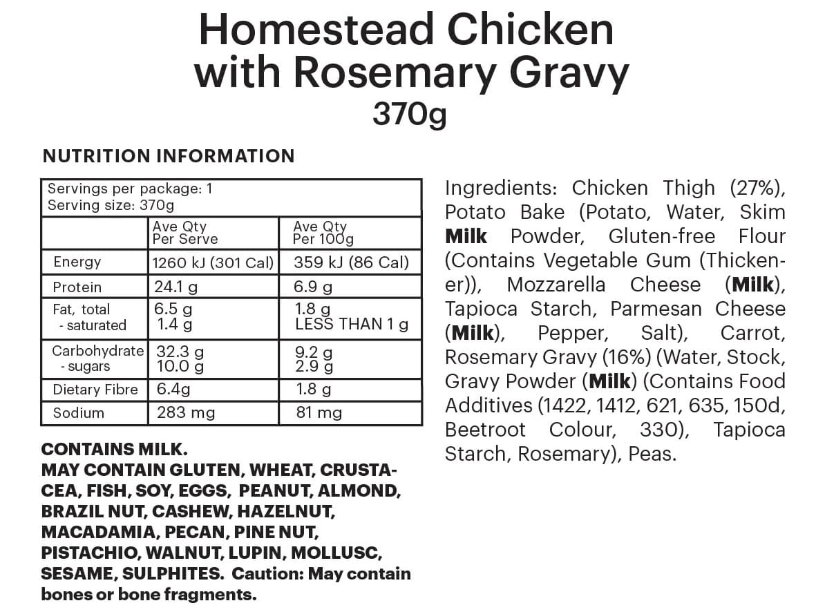 INDIVIDUAL SERVE | Homely roast chicken with rosemary gravy, creamy potato bake, tender carrot batons and garden peas.