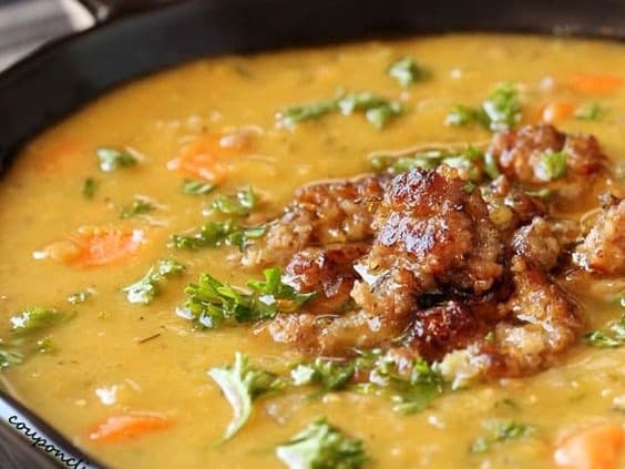 w/ Penne Pasta, Sweet Corn, Broccoli, Peas + Parmesan