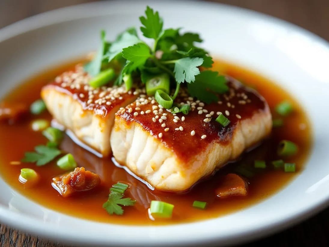 Grilled barramundi with brown rice, steamed broccolini, edamame, pickled ginger slaw + citrus ponzu dressing