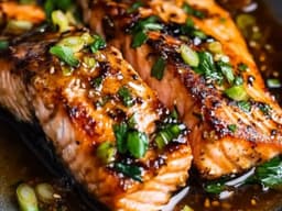 Brown rice, Salmon fillet (Fish), Sweet potato, Bok choy, Red capsicum, White miso paste (Soy), Canola Oil Spray, Olive oil, Rice vinegar, Water, Honey, Salt, Soy sauce (low sodium) (Wheat), Sesame oil, Black Pepper