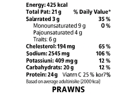 Prawns (Crustacean), Brown Lentil, Carrots, Green beans, Eggplant, Garlic paste, White miso paste (Soy), Olive oil, Black Pepper, Canola Oil Spray, Red Onion, Salt, Soy sauce (low sodium) (Wheat), Rice vinegar, Parsley, Sesame oil, Lemon juice, Garlic powder