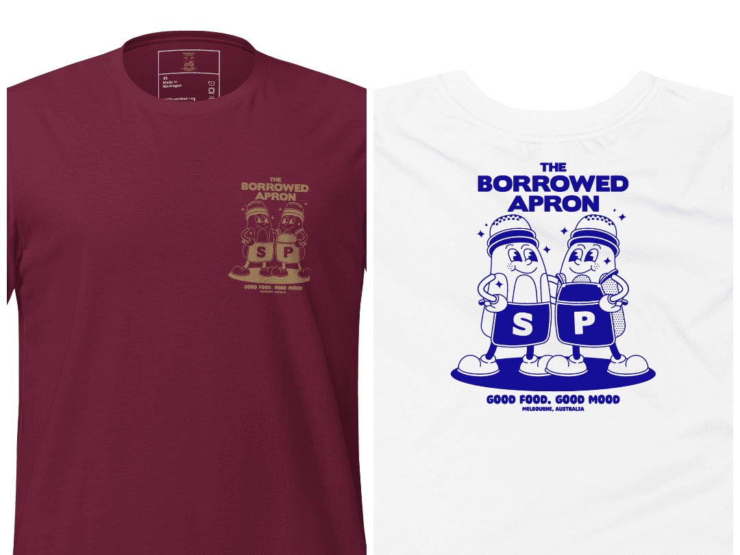 Welcome to The Borrowed Apron, where food and fashion collide in the most delightful way! Introducing our first-generation t-shirts featuring the charming "Salt and Pepper" design. These tees aren't just apparel; they're expressions of our passion for flavour and fun. With a variety of sizes and colours to choose from, there's a shirt to suit every taste and style. Embrace the playful "Salt and Pepper" design, adding a sprinkle of personality to your cupboard and here's a little treat: enjoy 10% off your order (food and merch!) with the coupon code "TSHIRT" as our way of spreading the joy of good taste, both on your plate and in your cupboard. Join us in celebrating food and style at The Borrowed Apron and as always thanks for your support! *Please note the standard print production (14 days+ shipping)