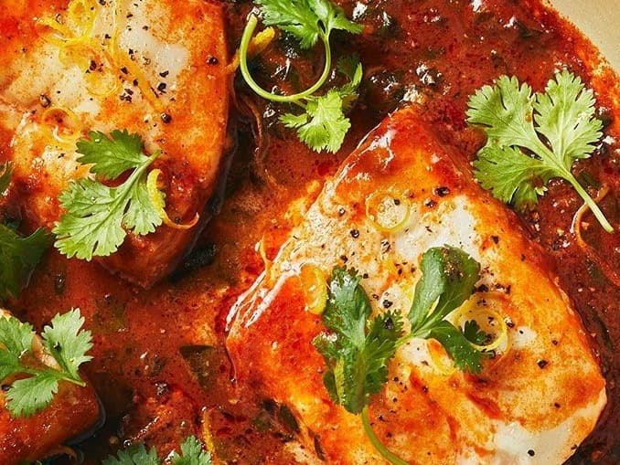 w/ Spring Onion Brown Rice, Sesame Broccoli, Roasted Zucchini + Moroccan Tomato Sauce Please note: EX PRO depicts the option for Extra Protein!