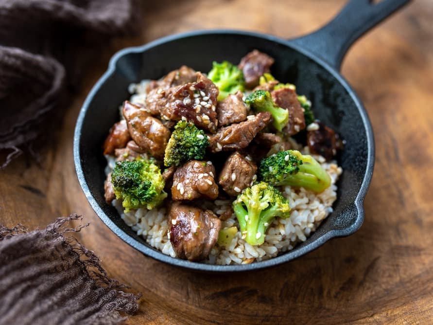 Tender slices of marinated beef stir-fried with crisp broccoli in a savoury garlic soy sauce. A classic, flavourful dish that combines hearty beef with fresh, vibrant vegetables.