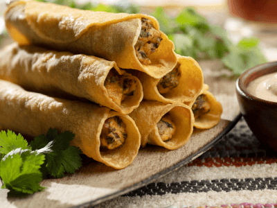 Rolled in stone-ground corn tortillas, each taquito is filled with a vibrant medley of fresh, colourful vegetables, including bell peppers, onions, kidney beans, and more. These taquitos are baked to perfection, offering a satisfying crunch with every bite. Whether you're looking for a light snack or a flavourful appetizer, our Vegetable Taquitos are the perfect choice. Enjoy them solo or paired with your favourite salsa or guacamole for a truly delightful dining experience!