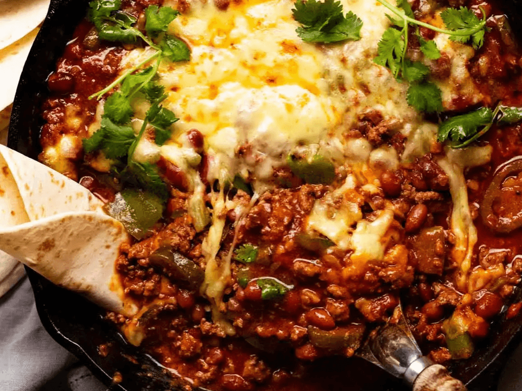 A Mexican Cheesy Bake with slow cook beef brisket and our smoky beans, topped with fresh herbs and lots of melty cheese! Delicious in tacos, DIY burritos, or dunk with your favourite corn chips! Simply place in the oven for 20 minutes till the cheese is bubbly and melted. Mmmm, soo good! We've added only a few jalapeno chillis for a mild heat to suit most palettes.