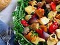 Locally grown veggies roasted to perfection with spinach and pesto cream dressing.