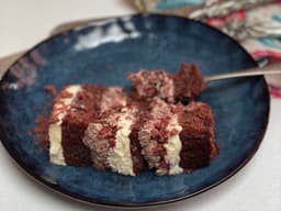 Sugar, Plain flour (Wheat), Milk, Icing sugar, Cream, thickened (Milk), Marscapone (Milk), Cream cheese (Milk), Vegetable oil, Chocolate 70% cocoa solids (Milk), Sugar, light brown, Unsalted butter (Milk), Eggs, Cocoa powder, Vanilla extract, Salt, Wine vinegar, Instant coffee, Gelatine, Baking powder, Bicarb soda, red (124)