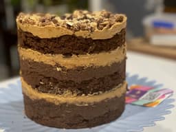 Indulge in our TBL Chocolate and Salted Caramel Stack - layers of moist chocolate cake, fudgy chocolate goodness, gooey salted caramel, and chocolate crumb. Perfect for all your special celebrations!