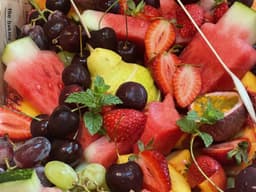 Melon, Grapes, Watermelon, Strawberries, Apple, Orange peel, Passionfruit