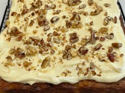 Plain flour (Wheat), Canned pineapple, Vegetable oil, Carrot, Golden caster sugar, Sugar, caster, Icing sugar, Eggs, Pecans, Walnuts, Raisins, Cream cheese (Milk), Baking powder, Lemon juice, Vanilla extract, Salt, Cinnamon, Cloves