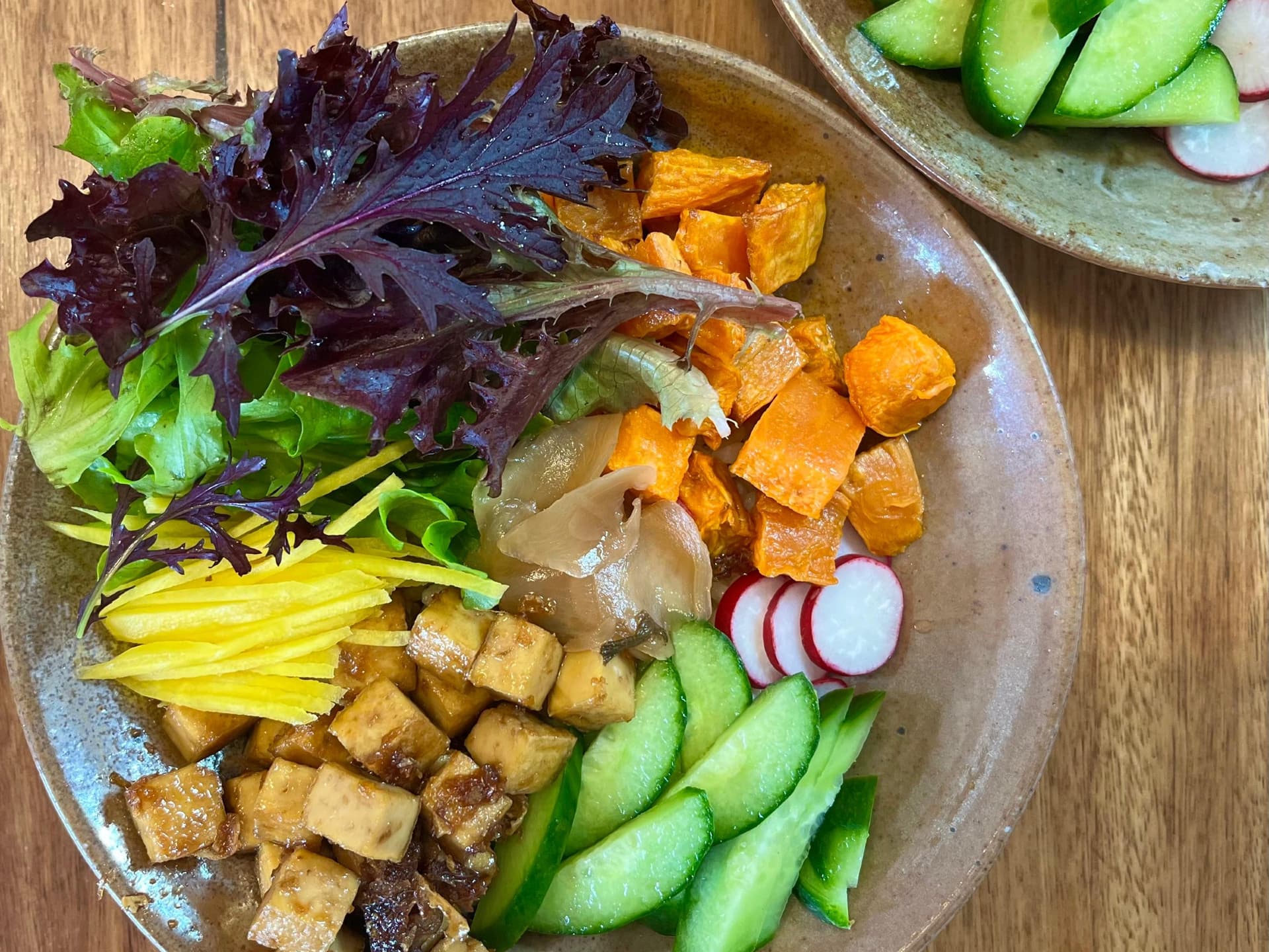 Marinated in a fragrant blend of Indonesian spices, our chicken satay (sate ayam) is grilled until tender, smoky, and beautifully caramelised. It’s served with soft, aromatic organic coconut rice - creamy, gently sweet, and unbelievably comforting. On the side, a bright Javanese cucumber and carrot pickle adds crispness and lift, with subtle sweetness and acidity that balance the whole dish.