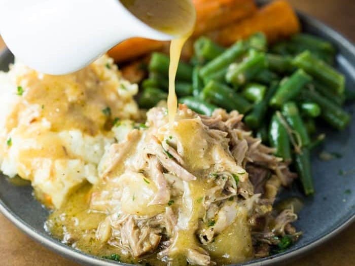 Succulent, juicy pork loin roasted to perfection! Gravy made from pan juices and stock from scratch, yes talk dirty to me!!! Then served with seasoned vegetables.
