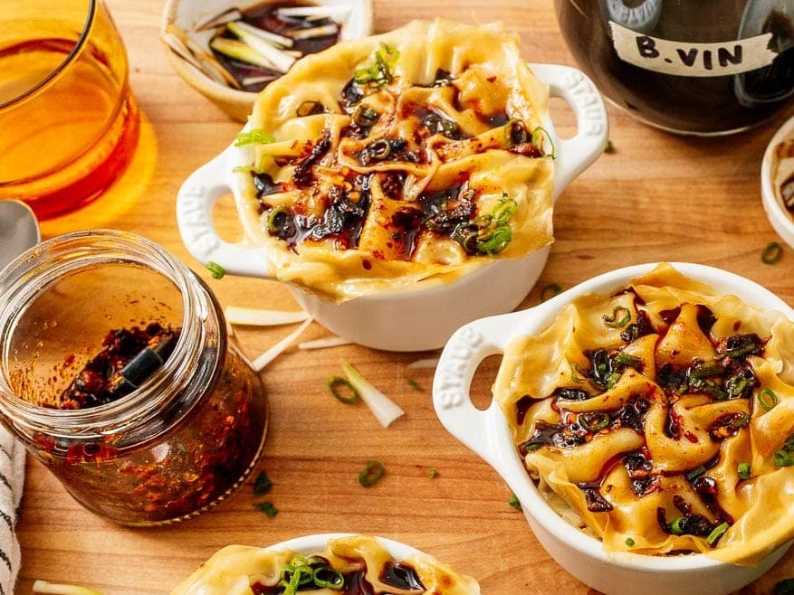It’s basically Chinese lasagne, layered with dumpling fillings and baked until the wrappers turn soft and steamy with a fluffier texture!