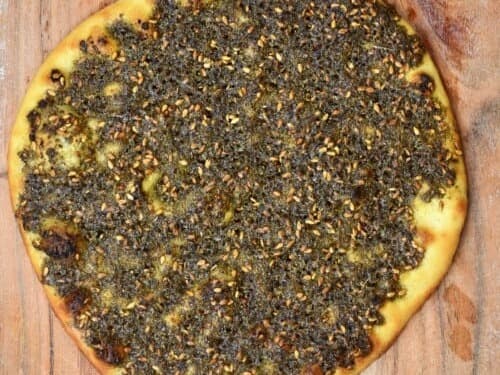 This is a bit of a fancy pita bread made fresh and brushed with olive oil and za'atar - perfect with Middle Eastern dips.