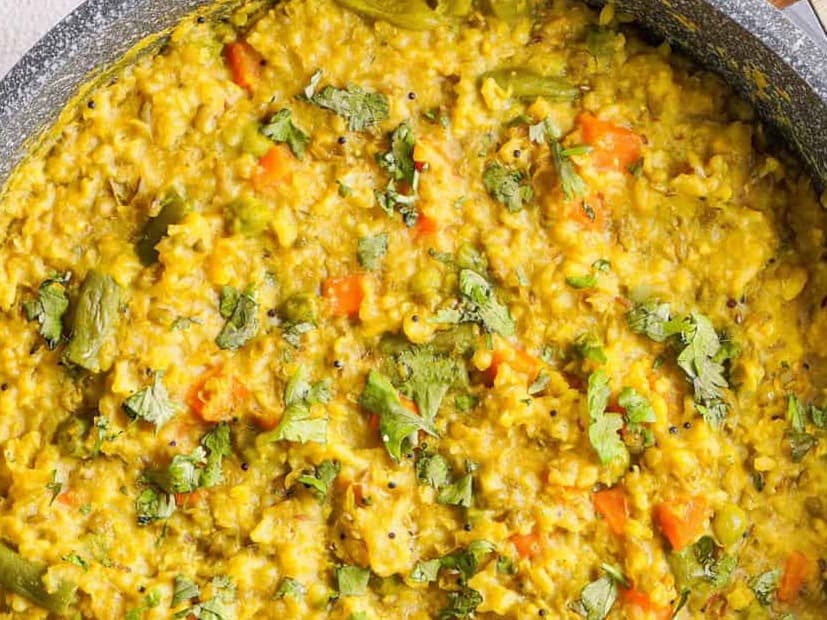 This is quite literally a hug in a bowl. Nourishing, full of anti-inflammatory goodness from the turmeric. It is a cross between a dahl and a congee, eaten for breakfast and during fasting in India. Give it a try. I love adding a dollop of Greek yoghurt and some chilli oil on mine. You could also add some chopped fresh tomato.