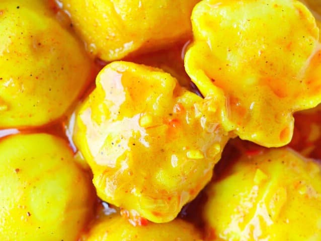 This is a Southern Thai yellow curry loaded with those delicious house-made prawn and fish balls. It is absolutely addictive.