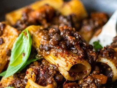 I love having this rich plant-based bologaise in my freezer. I eat it with pasta, use it to make vegetarian lasagne or spoon it over salt-baked potatoes or sweet potatoes. It is protein-rich boosted by a walnut paste, and cooked with red wine, giving it a truly meaty taste.