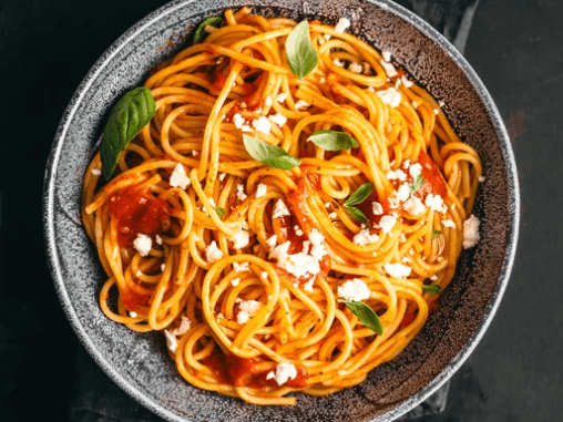 Roasted Vegetable Medley ( Pumpkin, Zucchini, Capsicum) Red Pesto, Spaghetti, Spinach, Pine nuts & Parmesan Cheese
