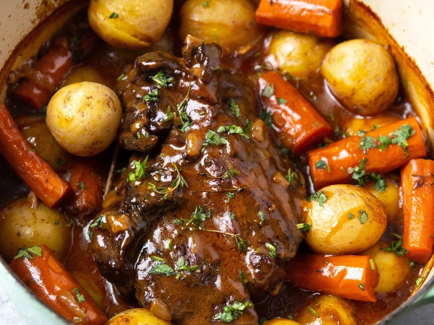 Grass Fed Braised Beef in Rich Thick Herb Gravy with Stewed Vegetables ( Carrot & Celery). No Side Included.