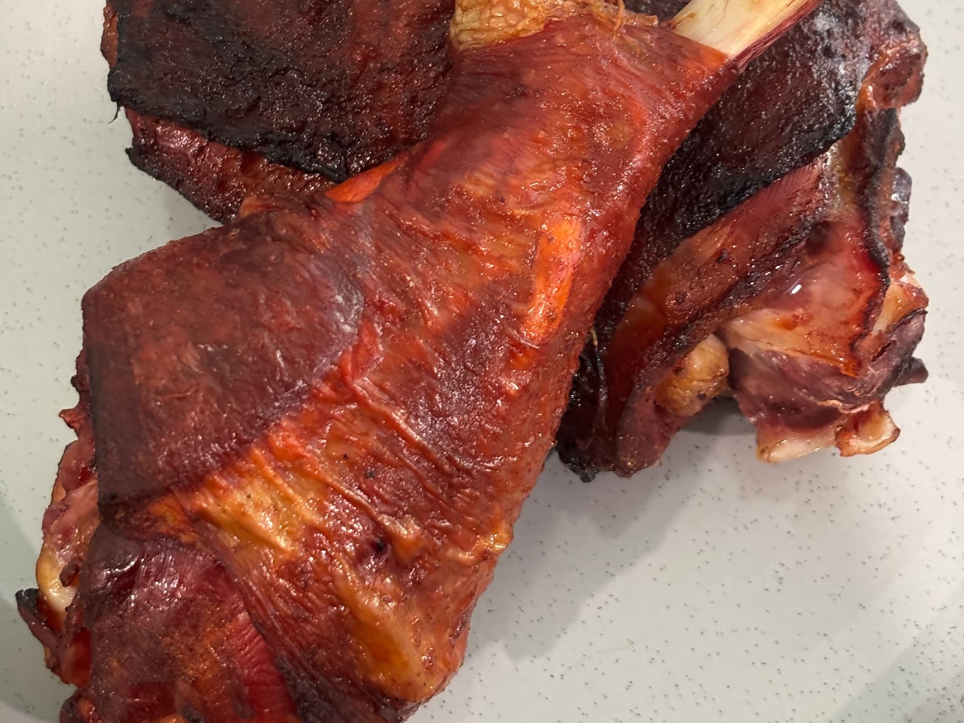 Seasoned turkey, smoked then finished in the oven. Dangerously Tasty & Delicious!! - with Jus. Approx. 1kg raw weight
