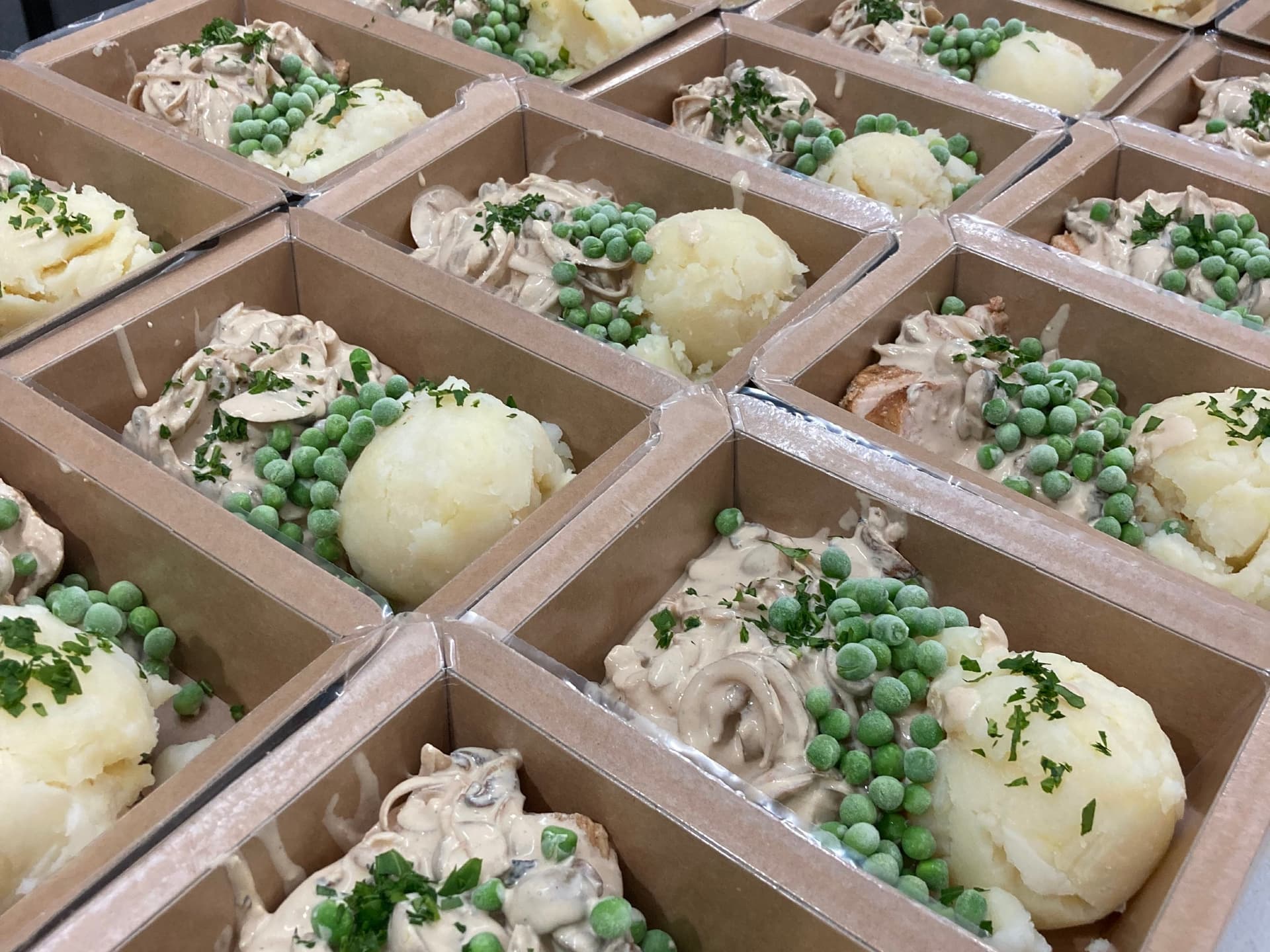 Sweet, Tangy & Creamy Chicken Served with Mashed Potato & Peas.