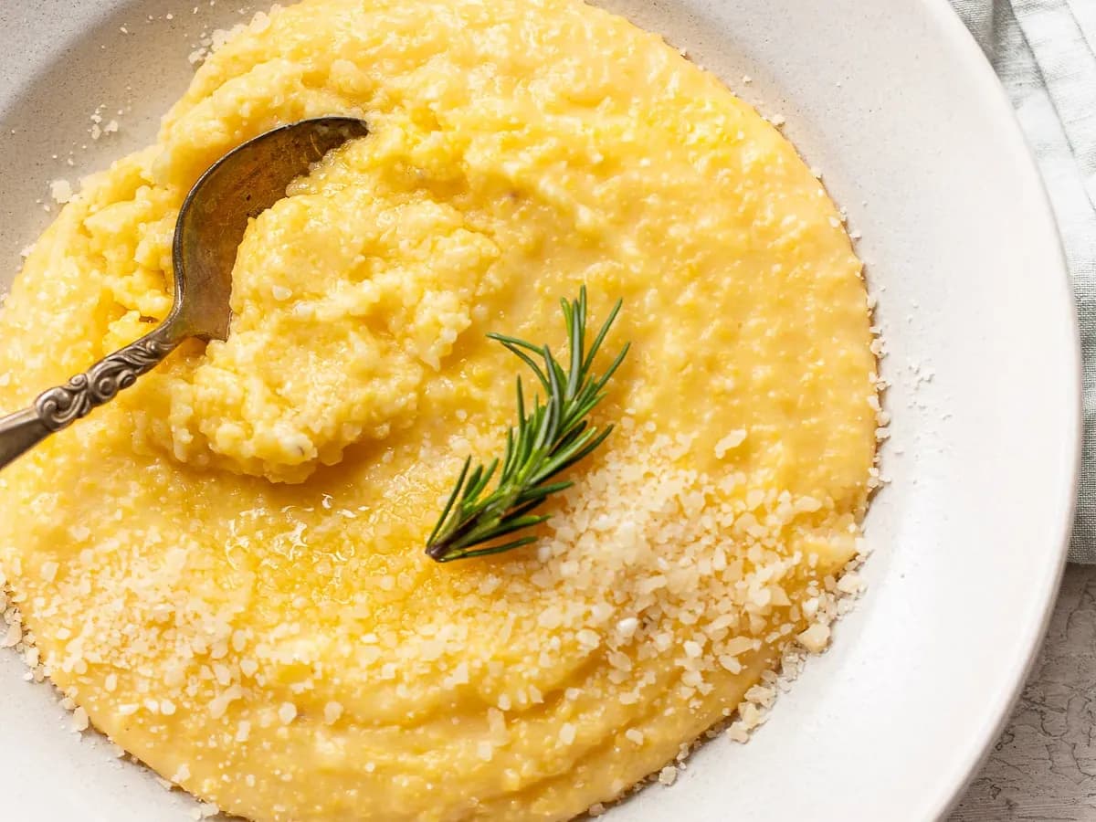 This soft and delicious cheesy polenta is a perfect side for any slow cooked saucy dish or roast meats.
