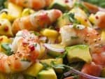 Australian prawns are the hero of this salad with mango, avocado and a lime, coriander and chili dressing.