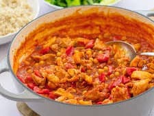 Slow braised pork loin with Italian chorizo, chickpeas, tomatoes, herbs and vegetables that will be sure to set your taste buds on a taste feast.