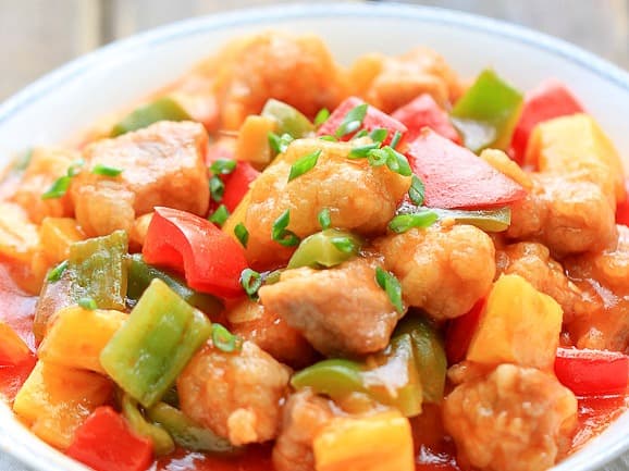 Tender pork pieces tossed in a sweet and tangy sauce with stir-fry onion, garlic, capsicum and pineapple. A dish the whole family will enjoy.