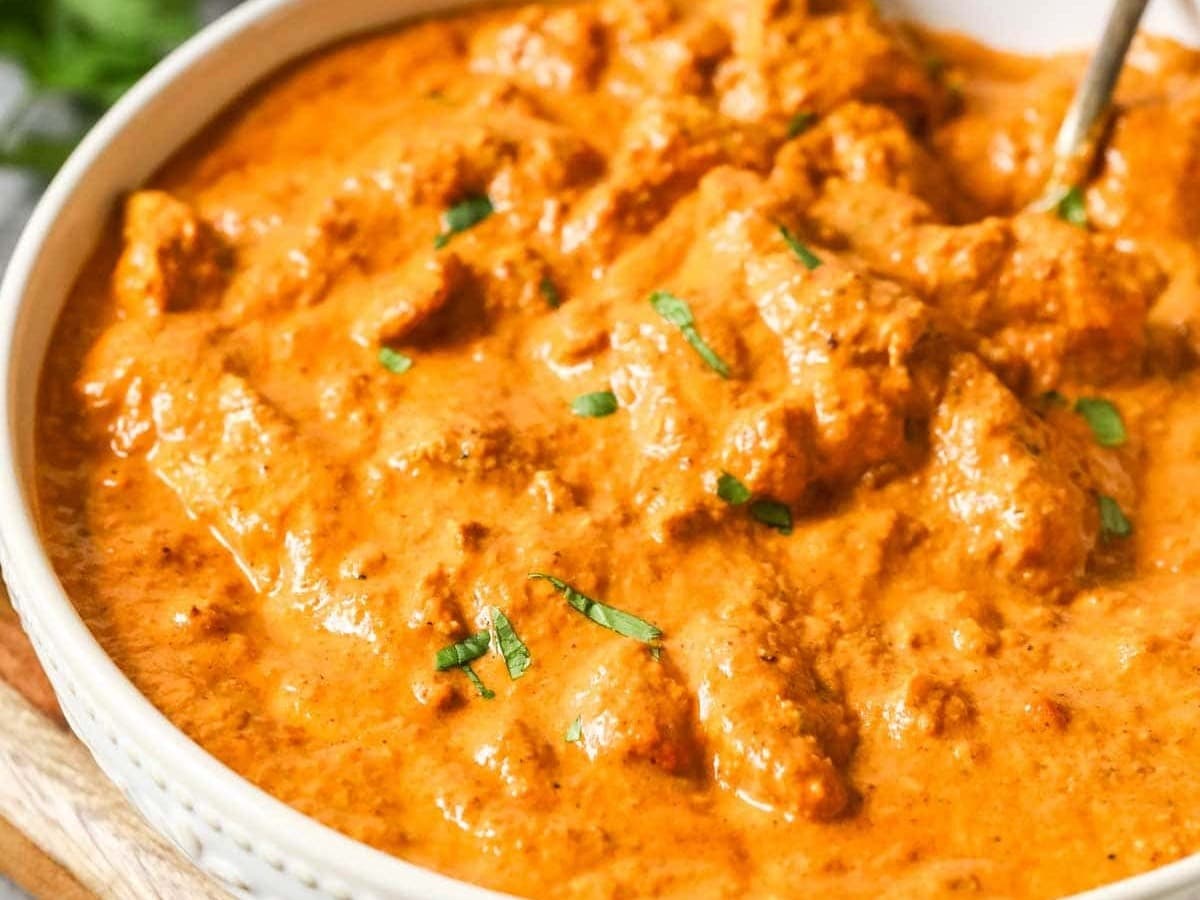 Tender chicken, gently simmered in a traditional Indian butter sauce, mild enough for the whole family to enjoy.