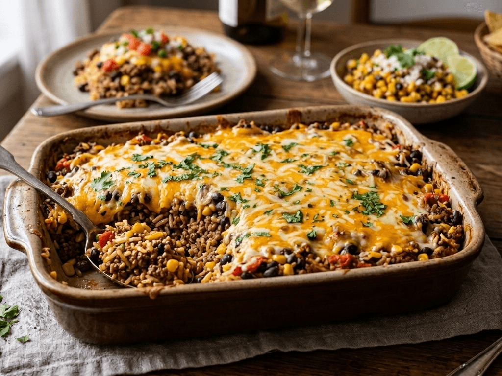 Seasoned beef mince, rice, capsicum and tomato baked together with herbs and cheese.