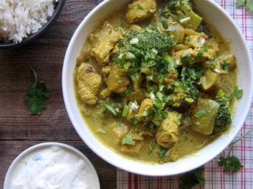 A delicious coconut rich green curry. Green curry is typically mild and this homemade curry paste is definitely that. Green broccoli is added to keep with the green theme.