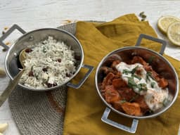 Basmati rice, Tofu (Soy), Coconut milk, Crushed tomatoes, Cranberries, Carrots, Potatoes, Tomatoes, Butter chicken paste (Peanut, Almond, Cashew), Parsley, Garlic, Ginger, Pink salt, Rice bran oil, Onion
