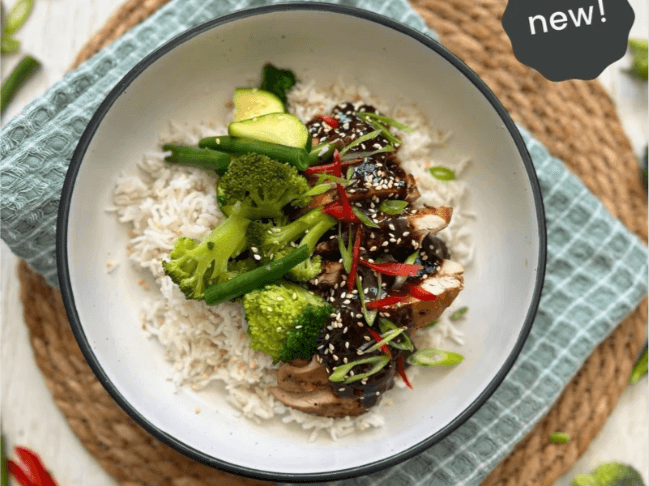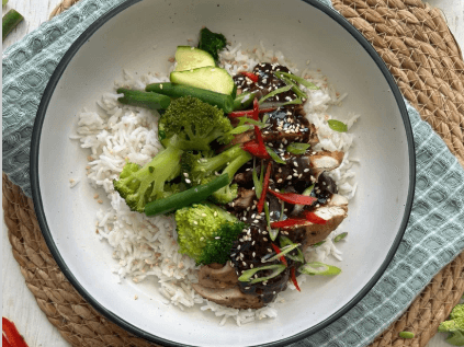 An excellent source of protein that's easily digestible because of the fermentation process. Tempeh, made from organic soybeans, marinated and seared for flavour, sits atop a bowl of deliciously infused Thai vegetables in our authentic curry sauce.